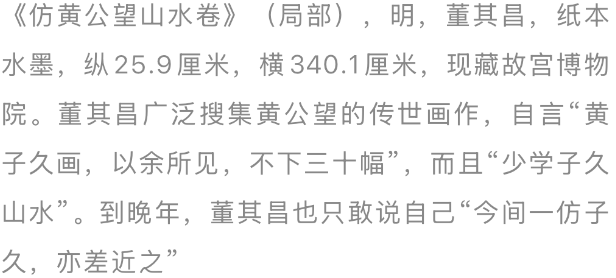 “国朝(指明朝)绘事……应推沈石田、董元宰,溯两公盘礴之源,俱出自黄子久(黄公望字子久)。”