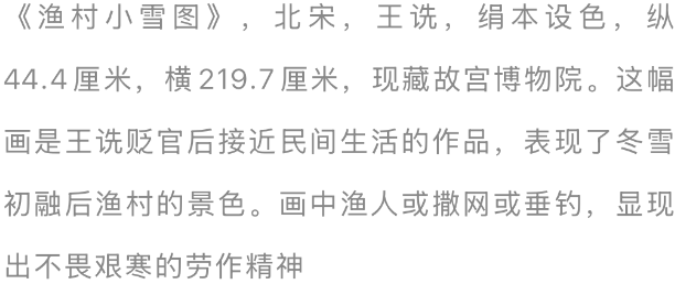 到了宋代,山水画中天然青绿派的势力不足水墨派,却并非乏善可陈。北宋末年,画坛出现了一股“相沿”潮水,与宋徽宗个东说念主有着莫大的关联。徽宗的瘦金体书道和花鸟画都负有著名,山水画雷同不乏可圈可点之处。故宫博物院藏《雪江归棹图》画幅的右上角有瘦金体“雪江归棹图”五字,左下角钤“宣和殿制”印并“寰宇一东说念主”画押,自是徽宗真货。就画图手段而言,此画山石空洞油腻,线条皴法古拙凝厚,是说念地的古法,由此也不错看出这位天子对山水画的审好意思取向。