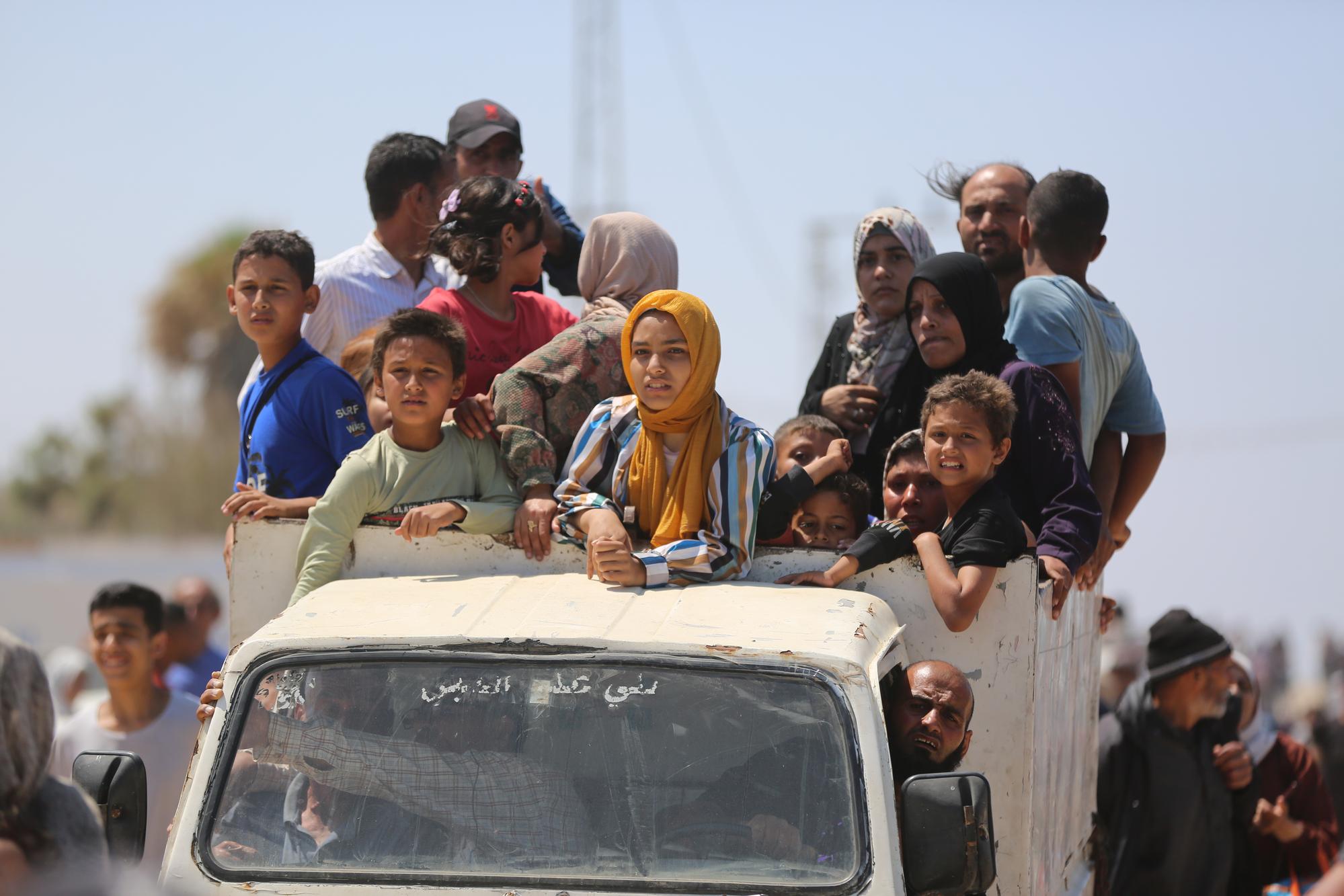 这是4月14日在加沙地带拉希德路中部路段拍摄的向北返家的东说念主群。新华社发