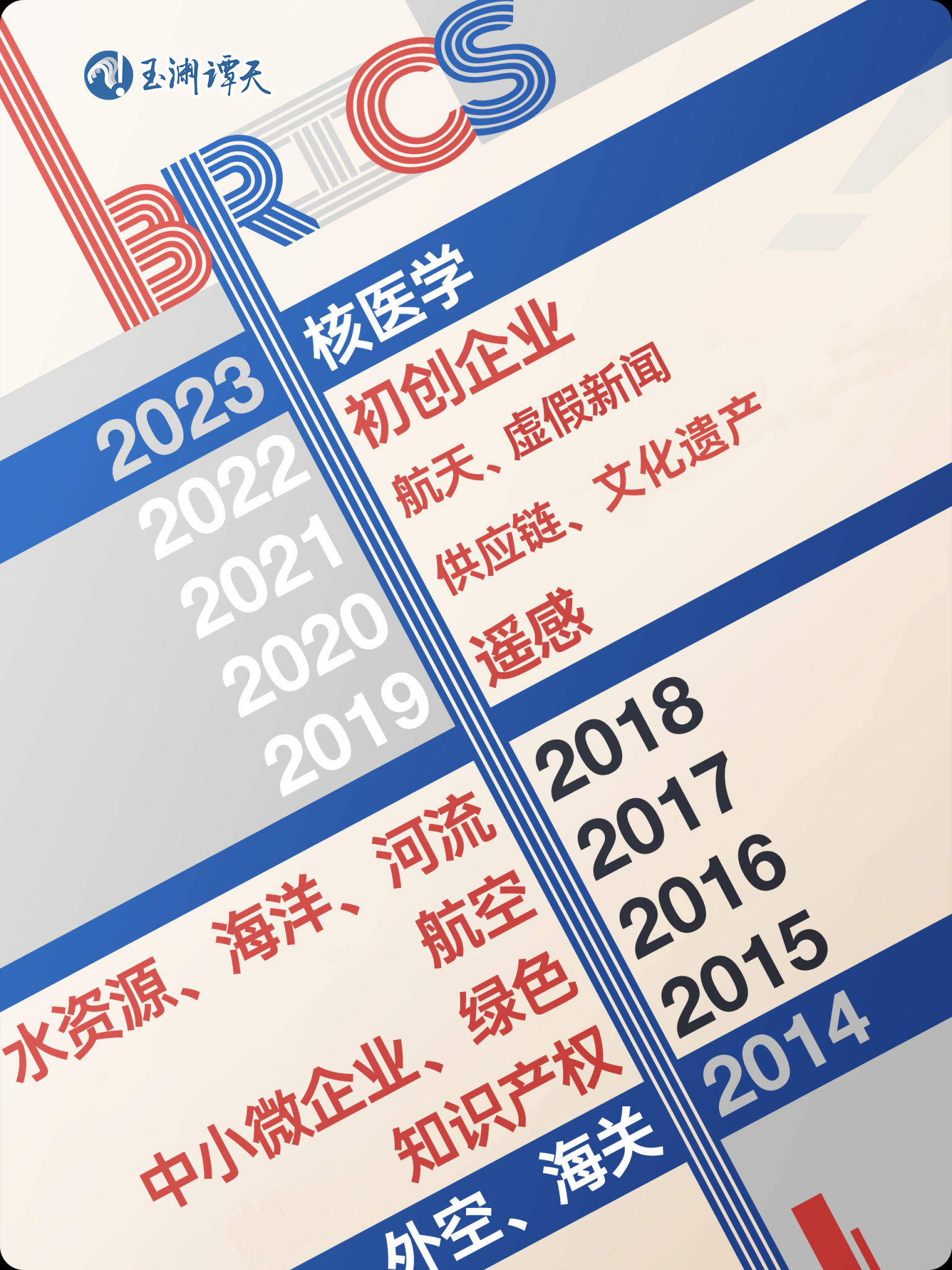 但是,梳理2013年到2023年间金砖国度指引东说念主会晤的宣言,就会发现这么一个趋势:公共贸易保护主义高潮的期间,却偶然成了金砖国度伙同机制在贸易规模上再发力的节点。