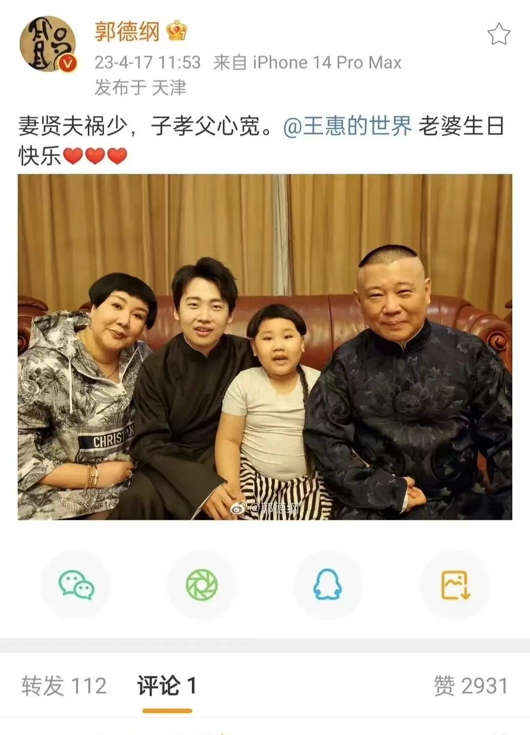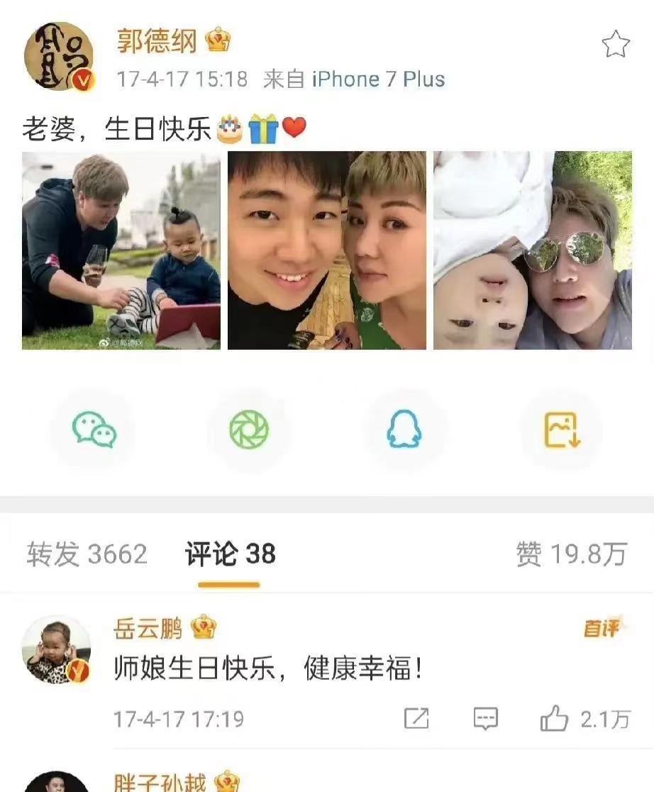 那一年,他在帖子中高调展示了三位中枢家庭成员,郭麒麟位居首位,王惠则占据C位。